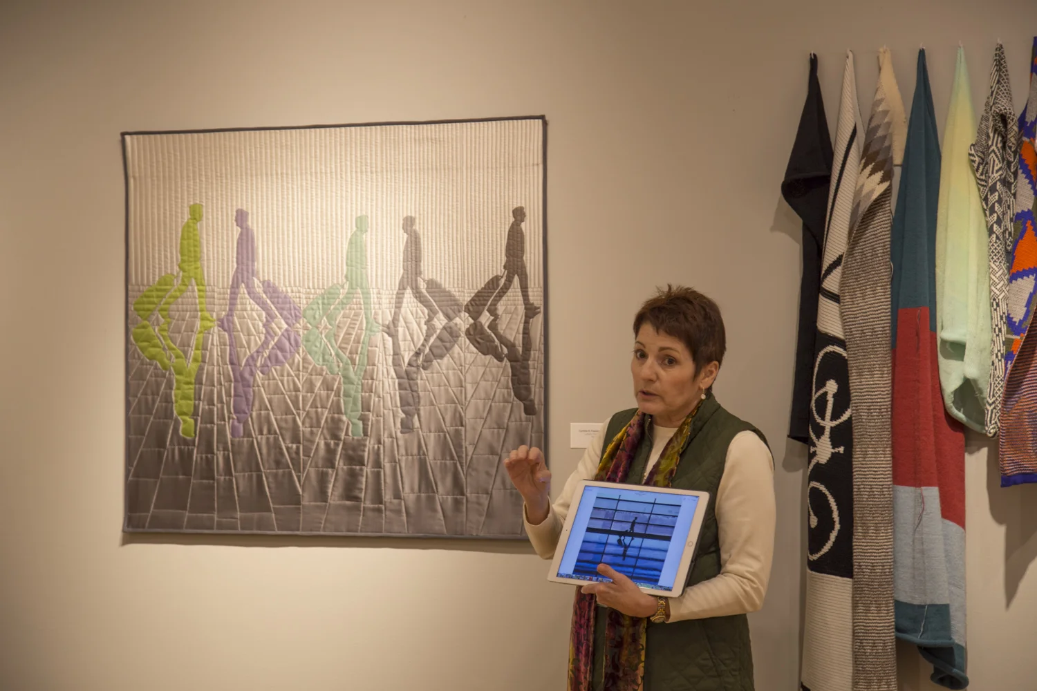 Leslie L. Pontz (PA), presenting on her piece, Natural Drape (woven piece, not pictured... was to her left)